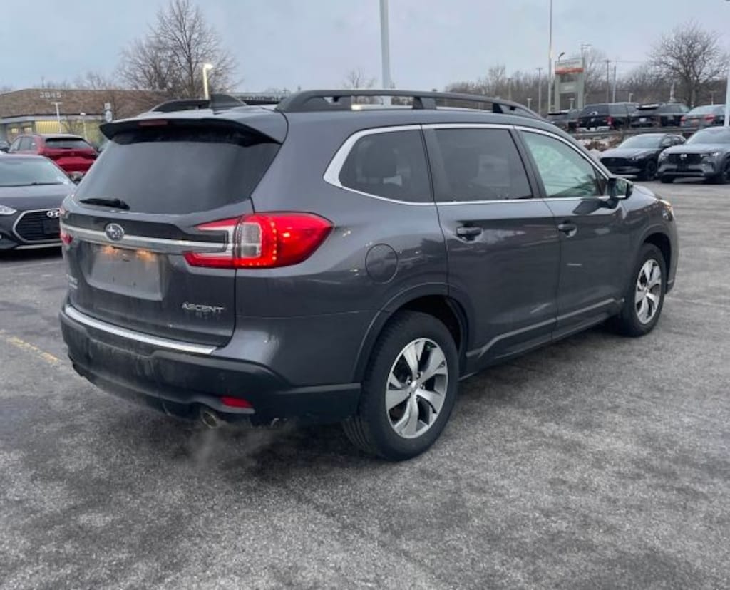 Recent Arrival! 2023 Gray Metallic Subaru Ascent Premium AWD AWD, Alloy wheels, Auto-Dimming Rear View Compass Mirror w/HomeLink, Automatic temperature control, Convenience Package, Exterior Parking Camera Rear, Fully automatic headlights, Heated Front Bucket Seats, Keyless Access w/Push-Button Start, Power driver seat, Power Rear Gate w/Automatic Close & Height Memory, Radio: Subaru STARLINK 11.6" Multimedia Plus System, Rear air conditioning, Reclining 3rd row seat, Remote keyless entry, Reverse Automatic Braking (RAB) System, STARLINK/Apple CarPlay/Android Auto, Steering wheel mounted audio controls.