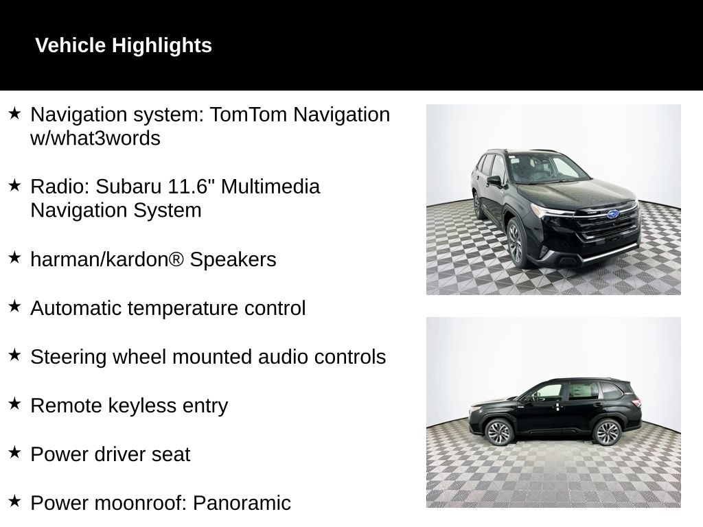 Purchased my 2025 Subaru Forester Sport and love the new body style and interior improvements of a quieter and more comfortable ride. This is my 4th Forester and so far the best one. I also got the optional package that has the power lifgate and the Harmon Kardon 11 speaker sound system which is well worth it since previous stock audio was not good. This one Rock's 🤟 I have always got Great trade in value from my Forester's which is a plus when purchasing a new vehicle. My only negatives are the infotainment takes time to get use to it and you have to look down to see it. And as others mentioned the cup holders seem to far back.… - 5.0