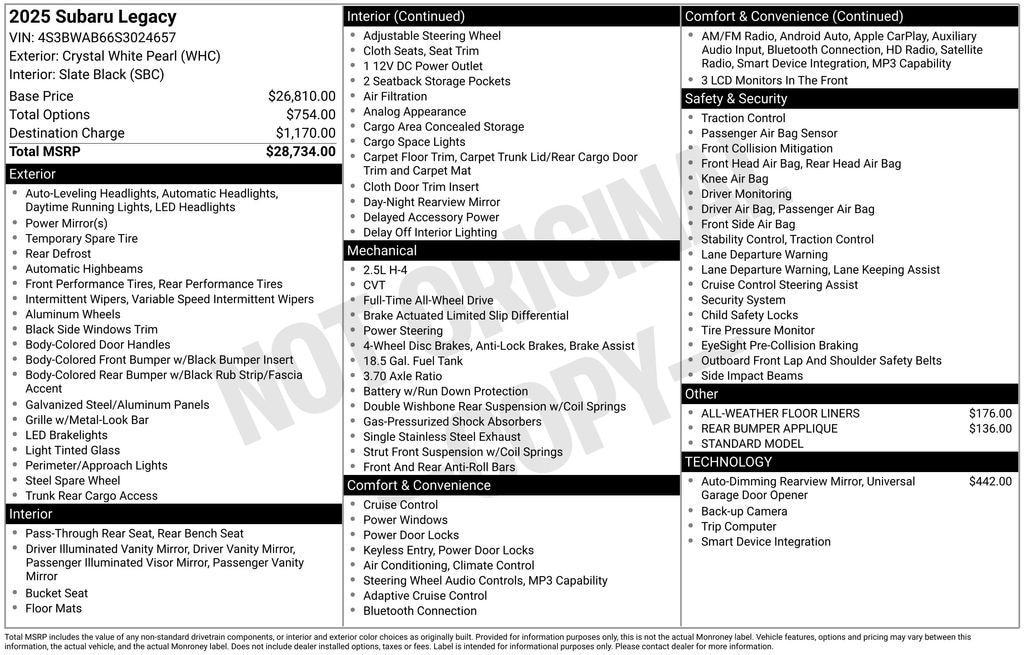 Certified. Recent Arrival! 2025 Crystal White Pearl Subaru Legacy AWD