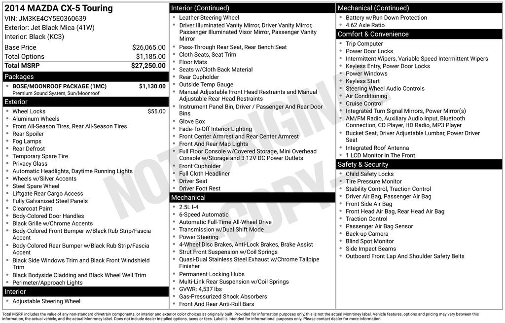Moonroof, BOSE/Moonroof Package, Keyless Entry, Steering Wheel Mounted Audio Controls, Power Sliding-Glass Moonroof w/Interior Sunshade, Fog Lights, Cruise Control