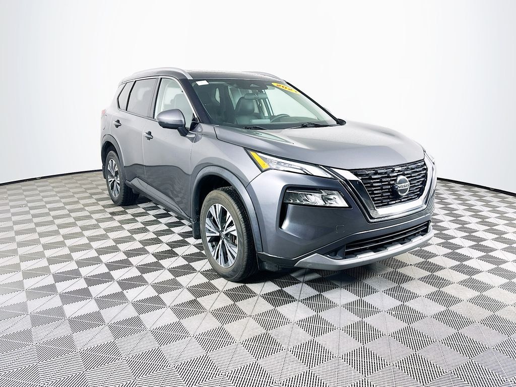 Recent Arrival! 2021 Gun Metallic Nissan Rogue SV AWD AWD, Automatic temperature control, Fully automatic headlights, Heated Driver & Front Passenger Seats, Heated Leather-Wrapped Steering Wheel, Leatherette Seat Trim, NissanConnect featuring Apple CarPlay and Android Auto, Power driver seat, Power Liftgate, Power Panoramic Moonroof, Premium Package, Remote keyless entry, Roof Rails, Second Row Sunshades, Steering wheel mounted audio controls.