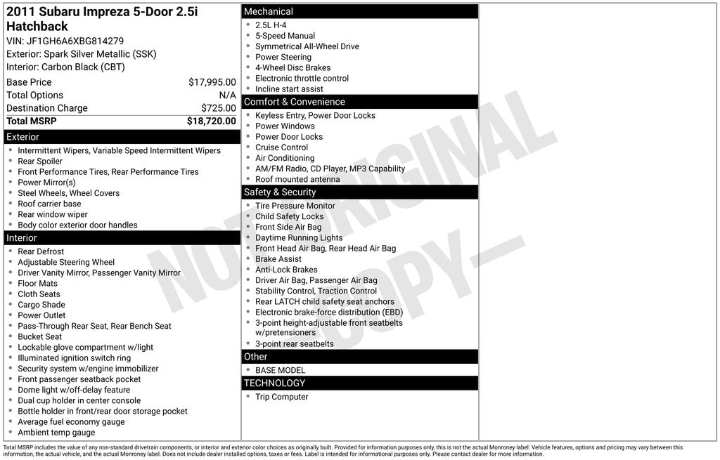 Recent Arrival! 2011 Spark Silver Metallic Subaru Impreza 2.5i AWD