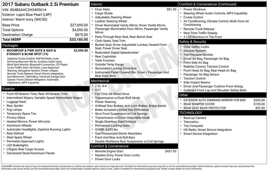 - Moonroof & Pwr Gate & Navi & EyeSight & Blind Spot$3,590