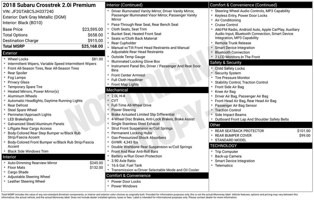 *The advertised price does not include sales tax, vehicle registration fees, other fees required by law, finance charges and any documentation charges ($387.00).