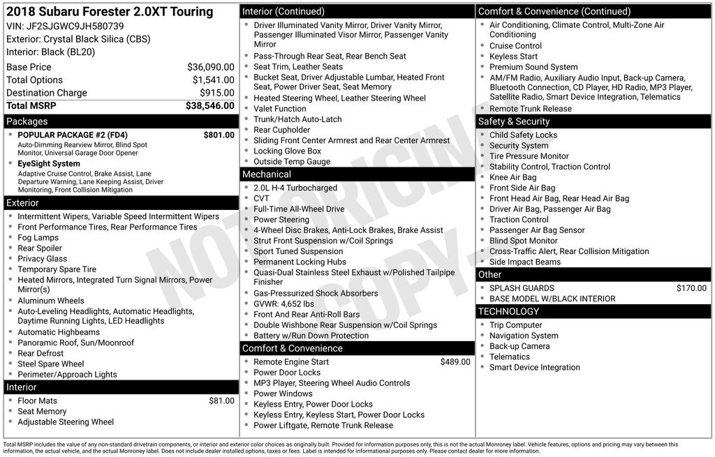 Used 2018 SubaruForester 2.0XT Touring