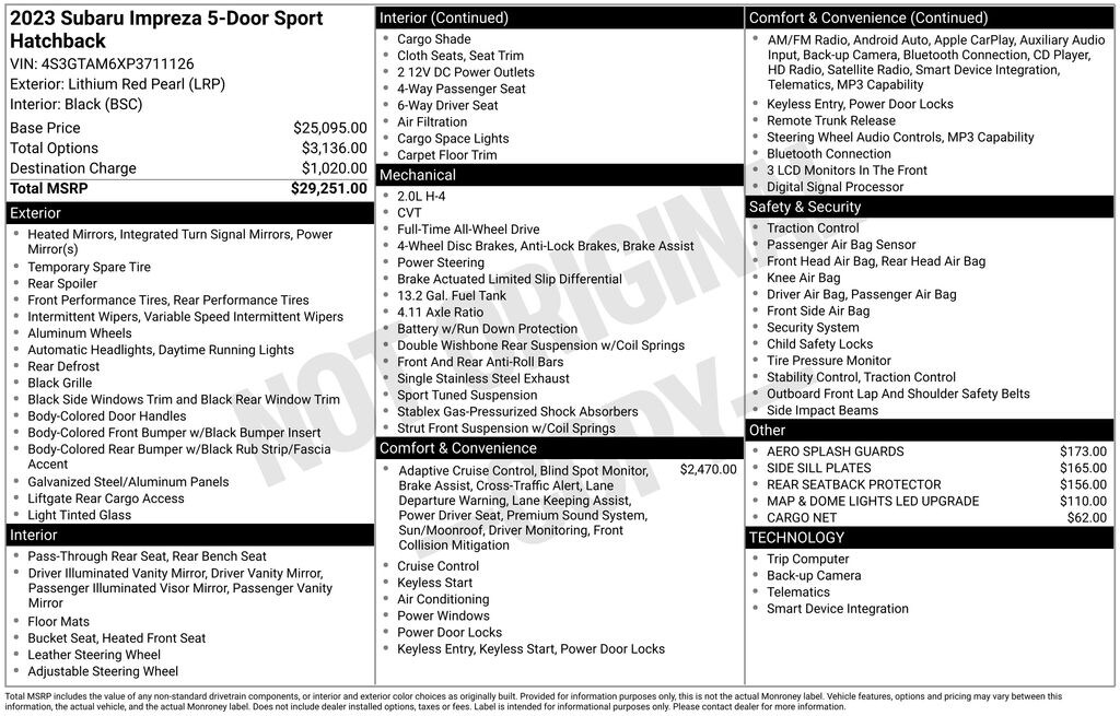 Recent Arrival! 2023 Lithium Red Pearl Subaru Impreza Sport AWD