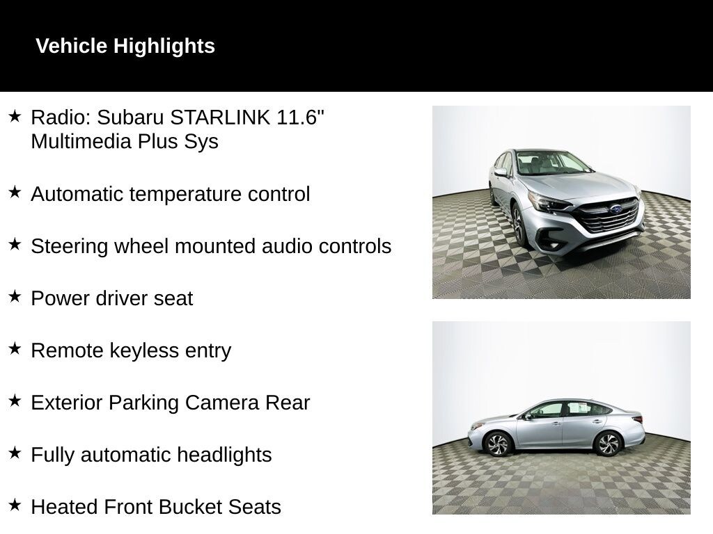 Recent Arrival! 2023 Ice Silver Metallic Subaru Legacy Premium AWD AWD, Automatic temperature control, Exterior Parking Camera Rear, Fully automatic headlights, Heated Front Bucket Seats, Power driver seat, Radio: Subaru STARLINK 11.6" Multimedia Plus Sys, Remote keyless entry, Steering wheel mounted audio controls.