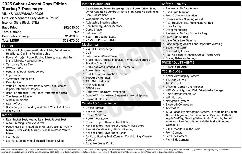 Used 2025 SubaruAscent Onyx Edition Touring