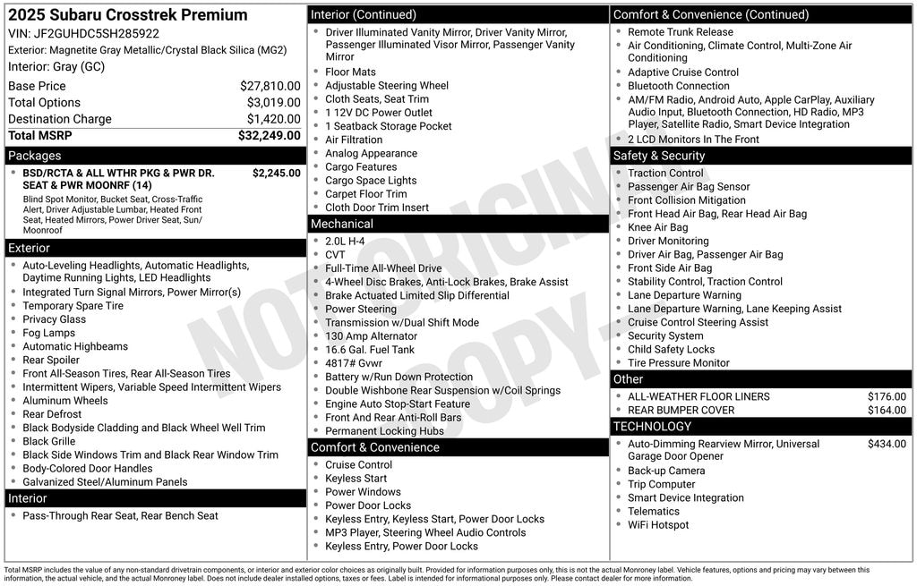- Smart device integration: MySubaru/Apple CarPlay/Android Auto