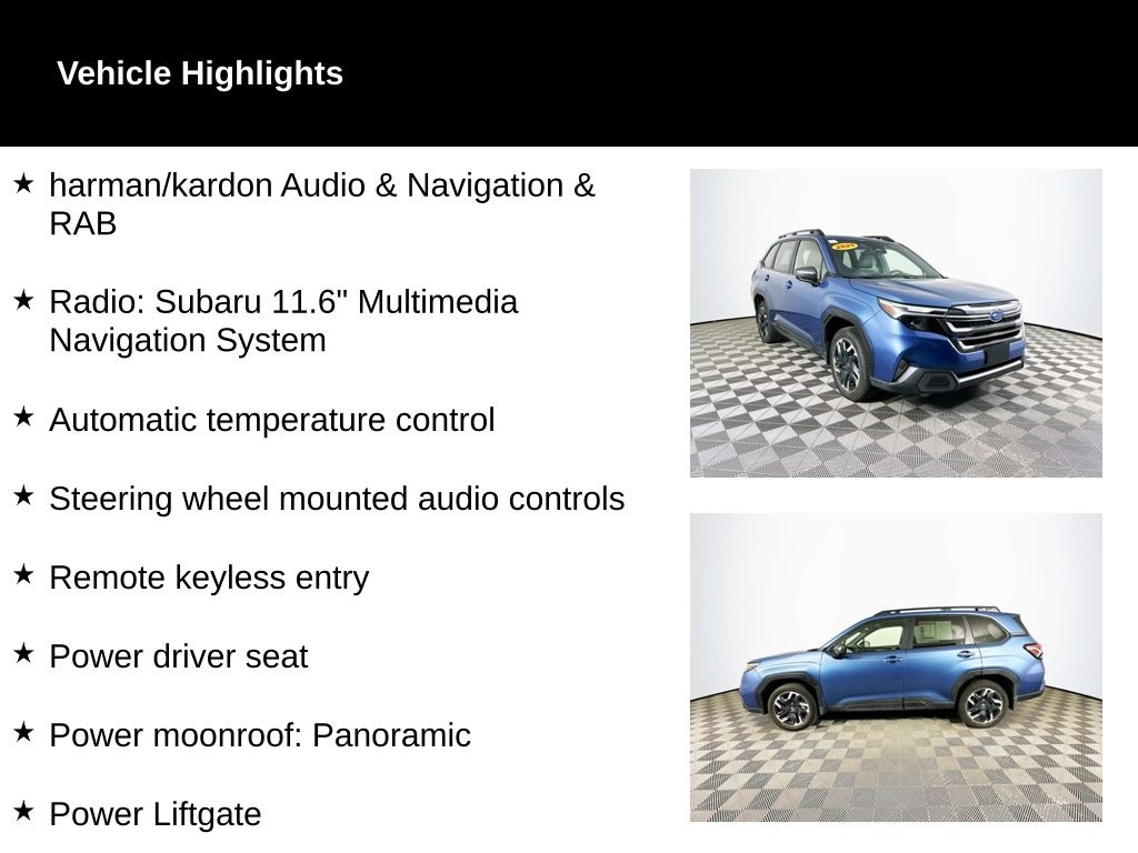 - Radio: Subaru 11.6" Multimedia Navigation System