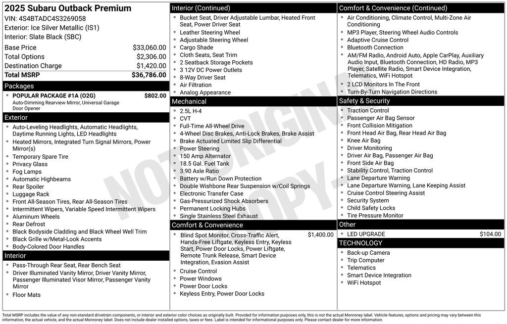 - Emergency communication system: MySubaru Safety (3-year free trial)